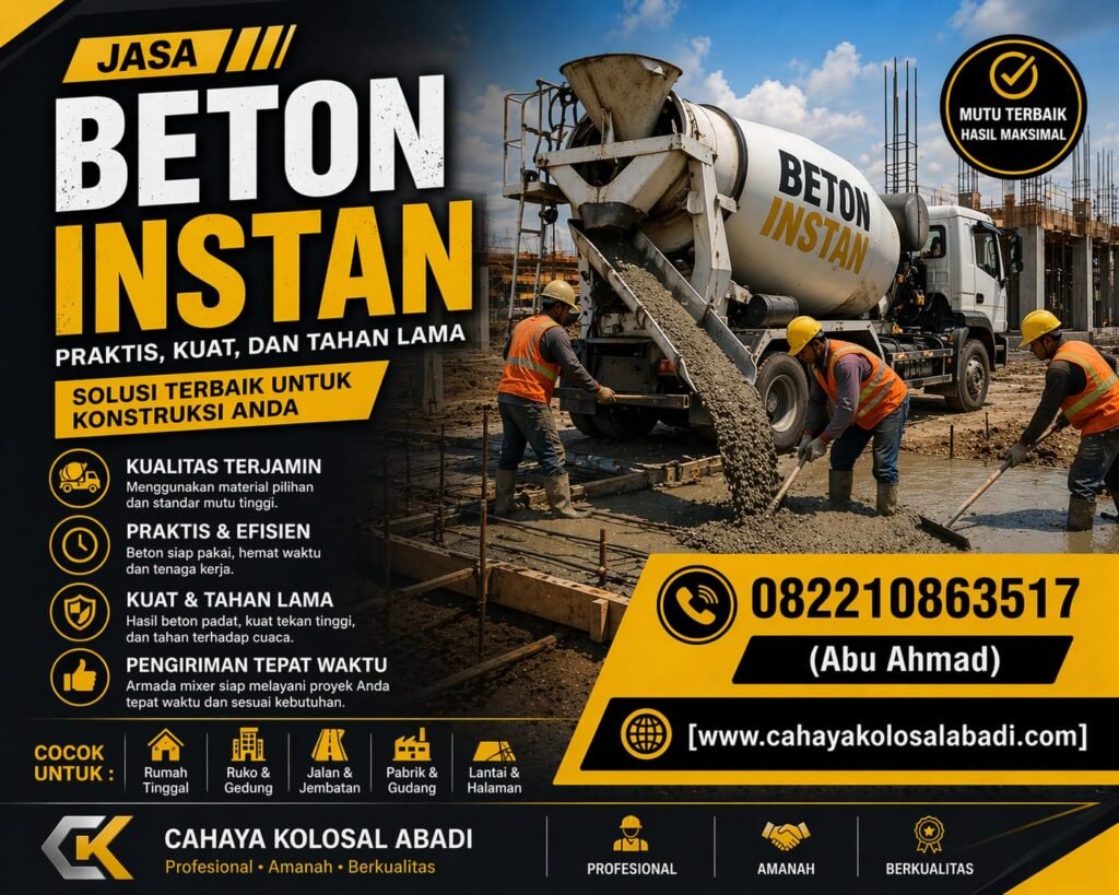 - Konfirmasi pemesanan 1-2 hari sebelum pengecoran.